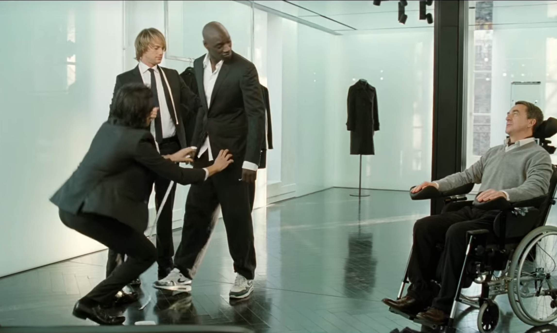 휠체어에 앉혀 일상을 살아가고 있는 필립의 호의에 드리스는 자발적으로 산책을 하게되고 필립이 경험해보지 못한 또다른 1%의 인생 경험을 체감하게 해줍니다. 자신의 고정관념을 깨뜨리는 드리스에게 진심으로 마음을 열게 된 필립은 그에게 비밀을 공유하게 되는데요.